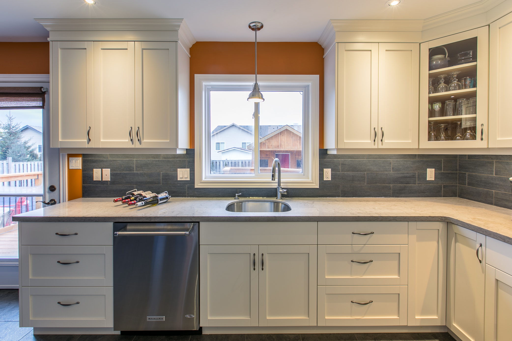 Left side view of the new kitchen and backsplash - Smithville, ON